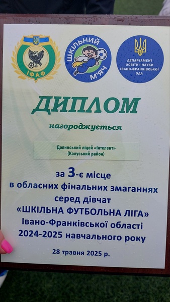 Щиро вітаємо нашу команду з футболу та їх тренерів Матійчин Н.Я. та Гошовськиого Ю.М. з 3-ім місцем в обласних фінальних змаганнях серед дівчат "ШКІЛЬНА ФУТБОЛЬНА ЛІГА" Івано-Франківської області 2024-2025 навчального року